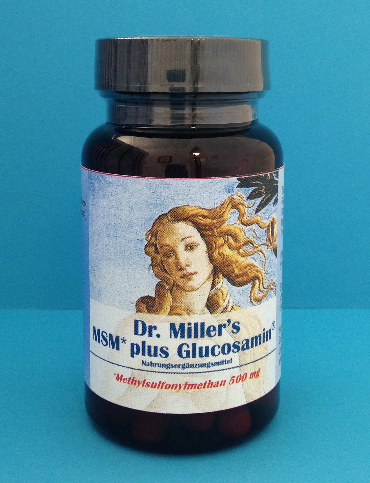 methylsulfonylmethane (49%), glucosamine sulfate KCl (39%, correspondes 29% glucosamine sulfate), gelatine (capsule), magnesium salts of fatty acids (anticoagulant), titanium dioxide (capsule)